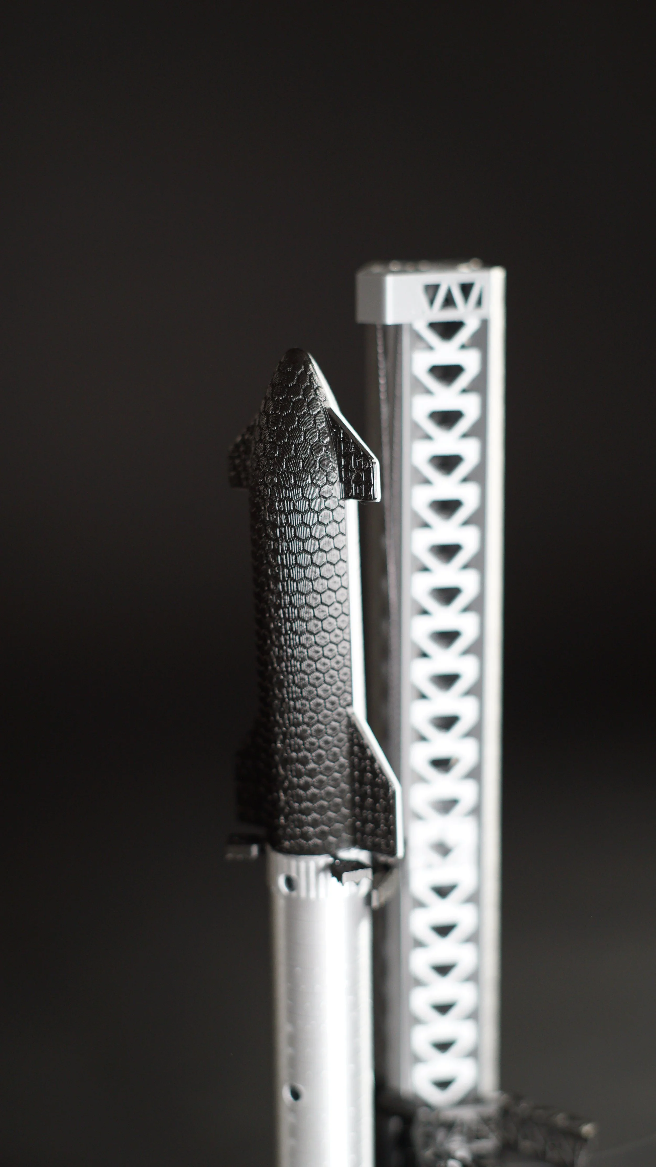 Starship is designed to be printed from PLA or PETG filament. To get the most realistic look, you’ll need black, gray/silver, and white filament. We also include a little bit of clear PLA to use for the Starbase sign.SLS